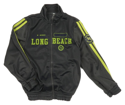 Tmavošedá sportovní propínací mikina s nápisem a pruhy