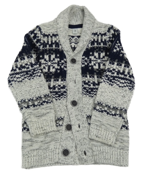 Bílo-tmavomodro-šedý vzorovaný propínací svetr Tu