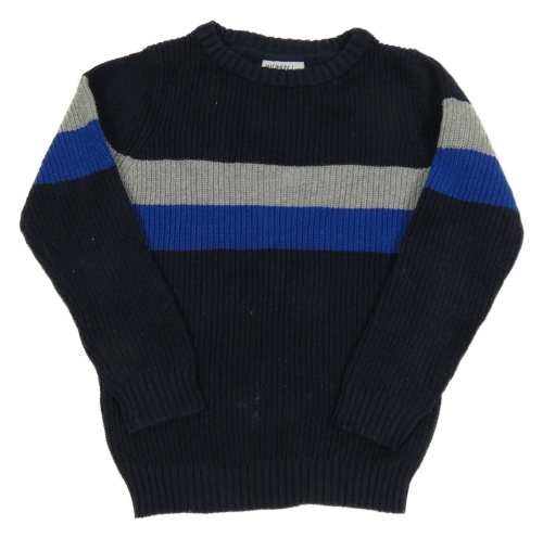 Tmavomodrý svetr s šedým a modrým pruhem