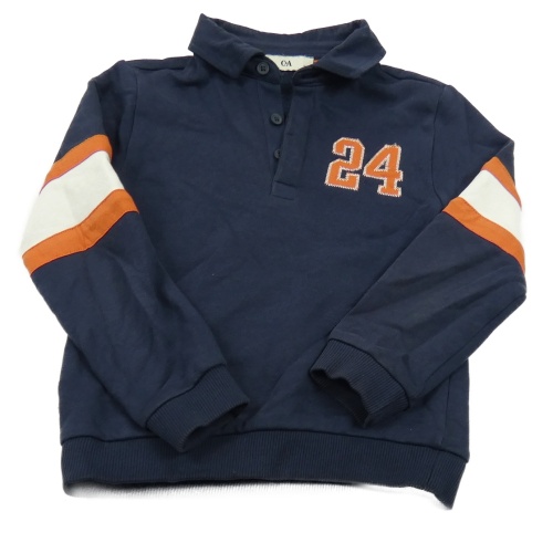 Tmavomodro-bílá mikina s číslem a pruhy a límečkem C&A