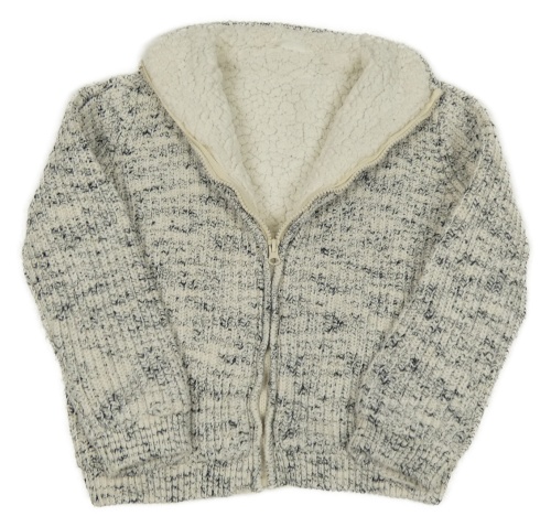 Bílo-šedý melírovaný žebrovaný propínací zateplený svetr M&S