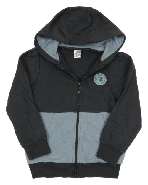 Černošedo-šedomodrá propínací mikina s nášivkou a kapucí little kids