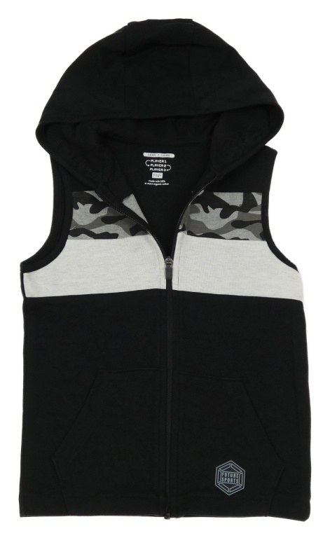 Černo-bílo/světlešedo-army propínací tepláková vesta s nášivkou a kapucí F&F