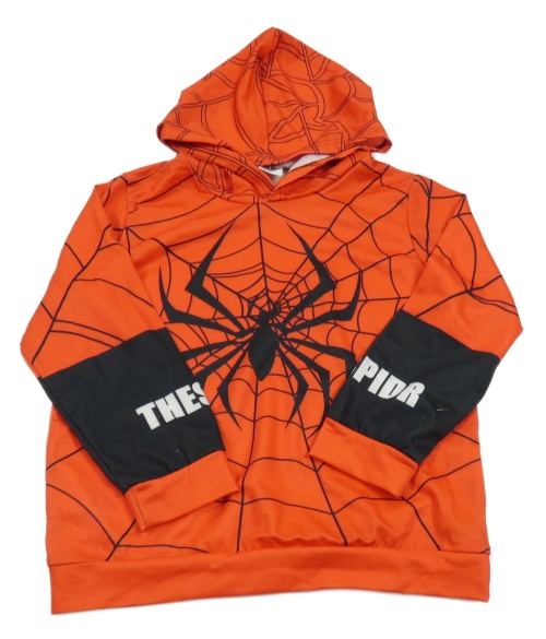 Červeno-černá vzorovaná lehká mikina s pavoukem a kapucí