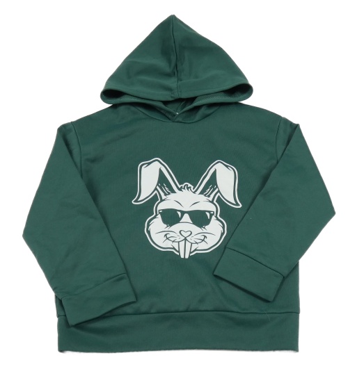 Tmavozelená mikina s králíkem a kapucí