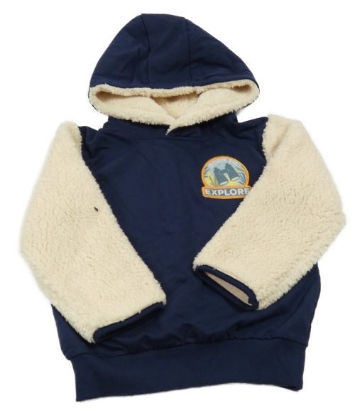 Tmavomodro-béžová mikina s nášivkou, huňatými rukávy a kapucí Kiki&Koko