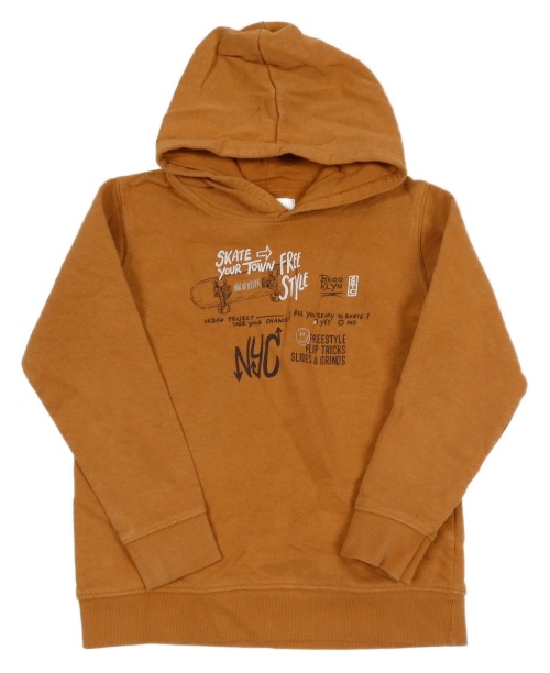 Medová mikina se skateboardem a nápisy a kapucí STC