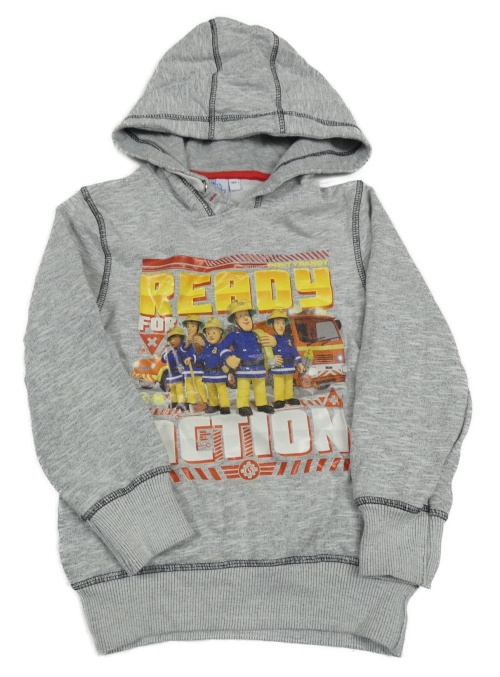 Šedá melírovaná mikina s Hasičem Samem a kapucí