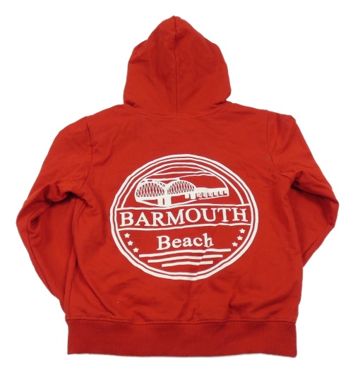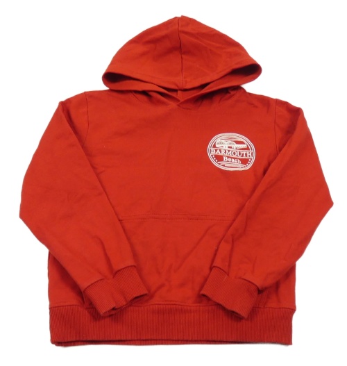 Červená mikina s potiskem a kapucí