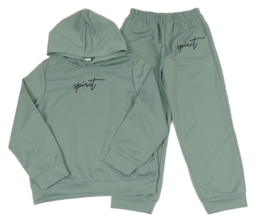 2Set - Olivovošedá mikina s nápisem a kapucí + tepláky SHEIN