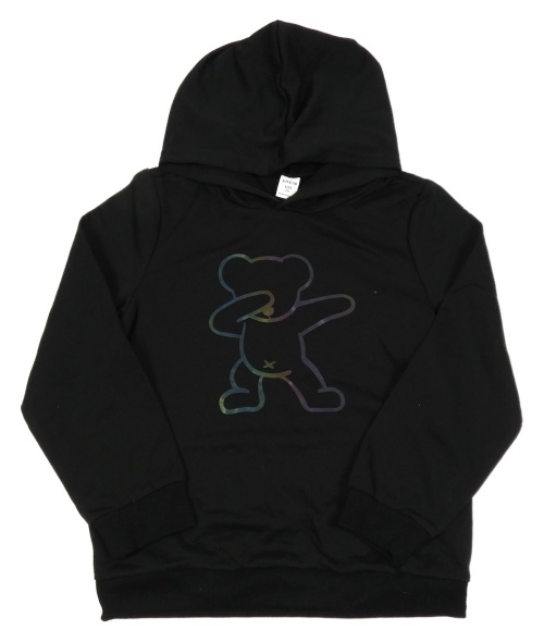 Černá lehká mikina s medvědem a kapucí Shein