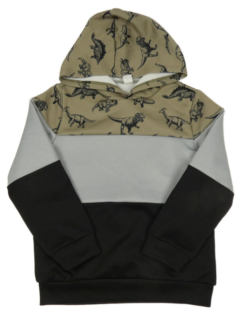 Khaki-šedo-černá mikina s dinosaury a kapucí Shein