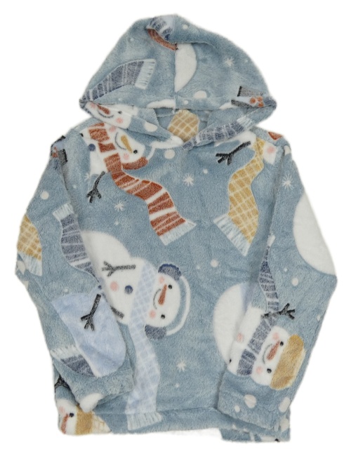Modrá melírovaná chlupatá mikina se sněhuláky a kapucí