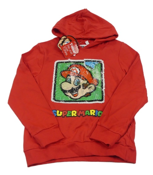 Nové - Červená mikina s Mariem z překlápěcích flitrů a kapucí