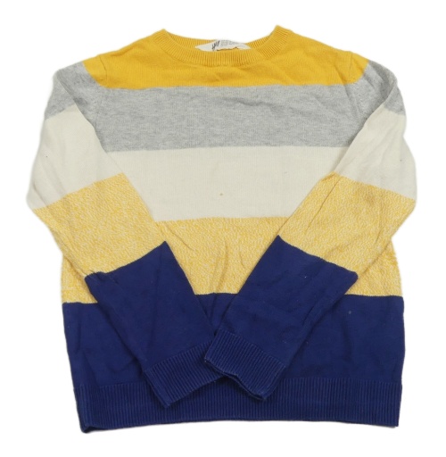Žluto-šedo-tmavomodrý pruhovaný lehký svetr H&M
