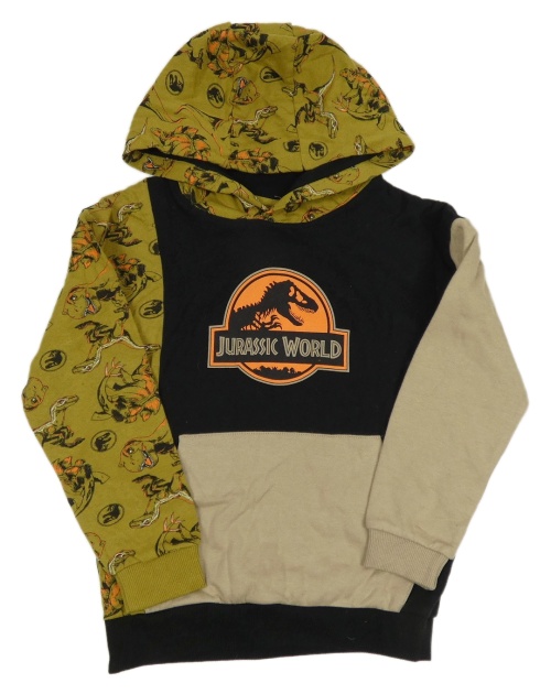 Černo-béžovo-olivová mikina s dinosaury a kapucí - Jurský svět