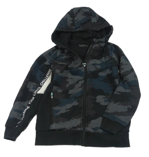 Černo-army propínací mikina s pruhem s nápisy a kapucí Nutmeg