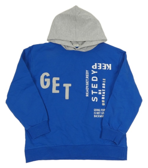 Modro-šedá mikina s nápisy a kapucí