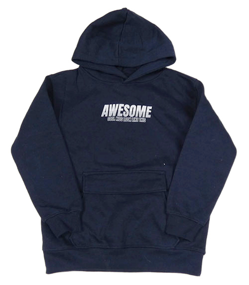 Tmavomodrá melírovaná mikina s nápisy a kapsou kapucí dopodopo