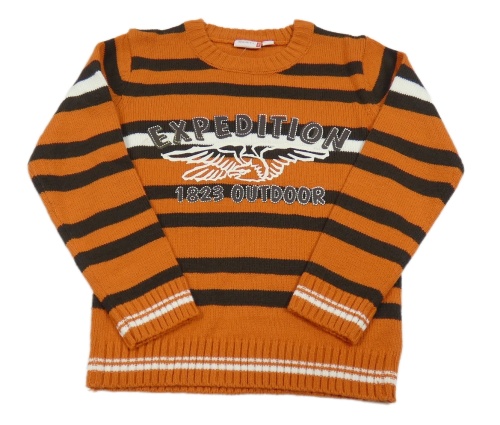 Oranžovo-hnědý pruhovaný svetr s nápisem