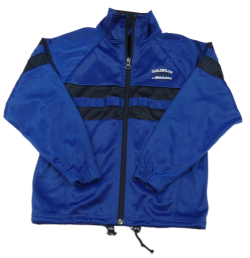 Safírová sportovní propínací mikina s pruhy a nápisem