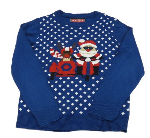 Tmavomodrý puntíkatý svetr se sobem a Santou