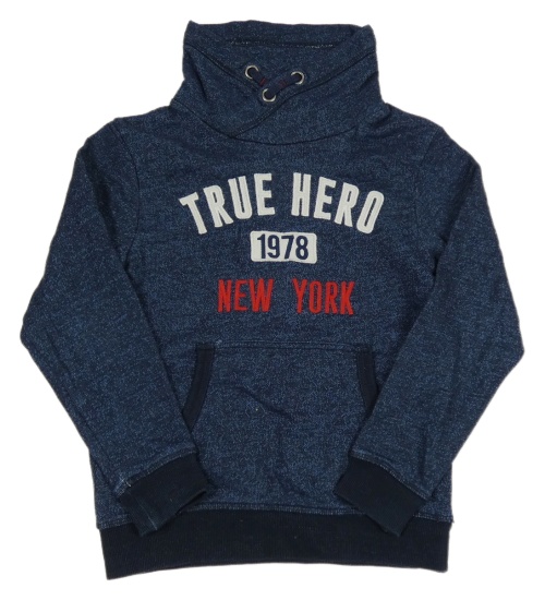 Tmavomodrá melírovaná mikina s nápisem a stojáčkem H&M