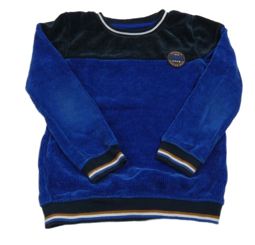 Safírovo-tmavomodrá žebrovaná sametová mikina s nášivkou Europe Kids