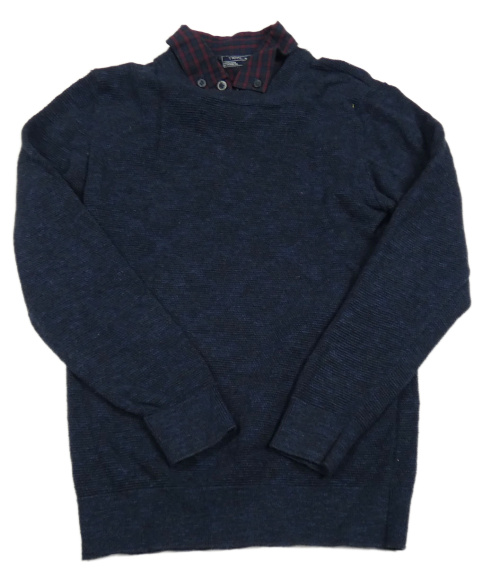 Tmavomodrý melírovaný svetr s košilovým límcem Next