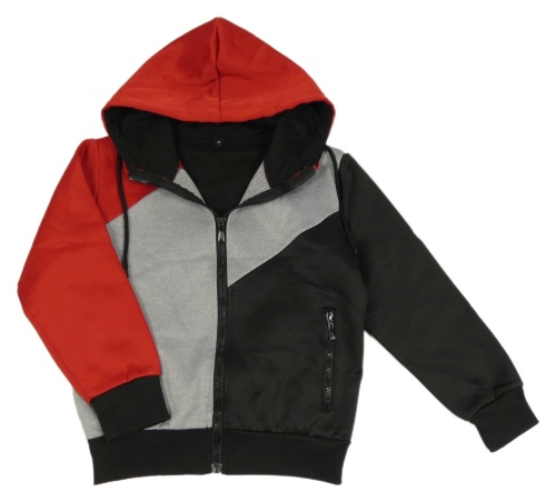 Černo-šedo-červená propínací sportovní mikina s kapucí