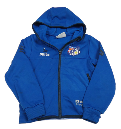 Safírová sportovní propínací mikina s potiskem a kapucí