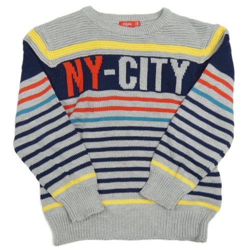 Šedo-barevný pruhovaný melírovaný žebrovaný svetr s nápisem TisSAiA
