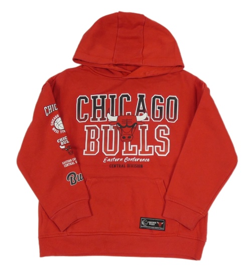 Červená mikina s potiskem - Chicago Bulls a kapsou a kapucí PRIMARK