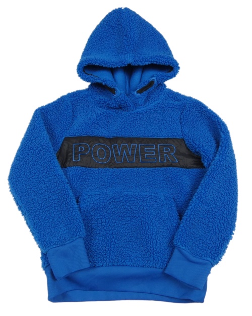 Modrá huňatá mikina s nápisem a kapucí Crane