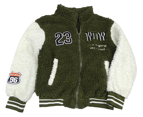 Khaki-bílá huňatá propínací mikina s nápisem Shein