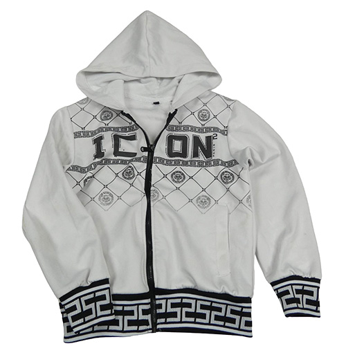 Bílá sportovní propínací mikina se vzorem a kapucí