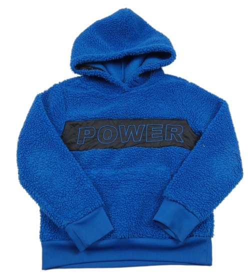 Modro-černá huňatá funkční mikina s nápisem a kapucí Crane