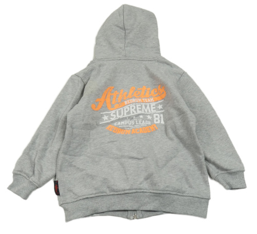 Šedá melírovaná propínací mikina s nápisem a kapucí