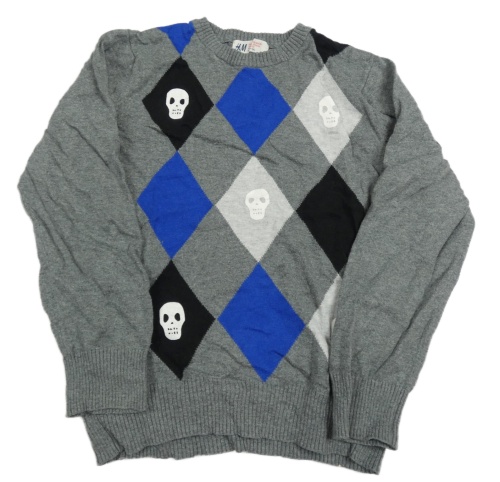 Šedo-modro-černý károvaný svetr s lebkami H&M