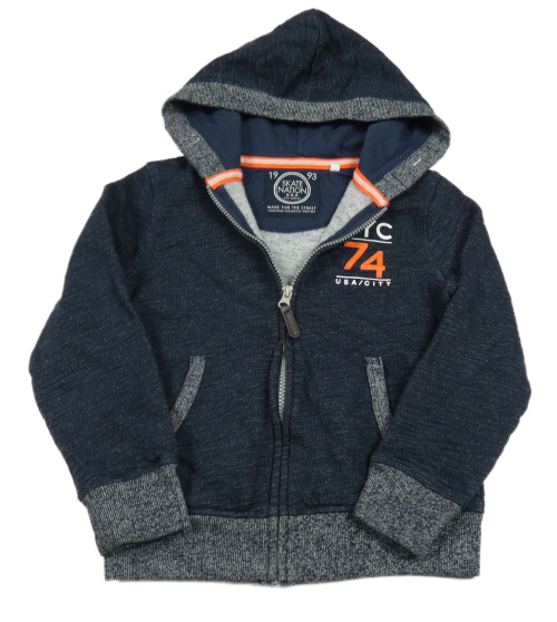 Tmavomodrá melírovaná propínací mikina s číslem a kapucí C&A