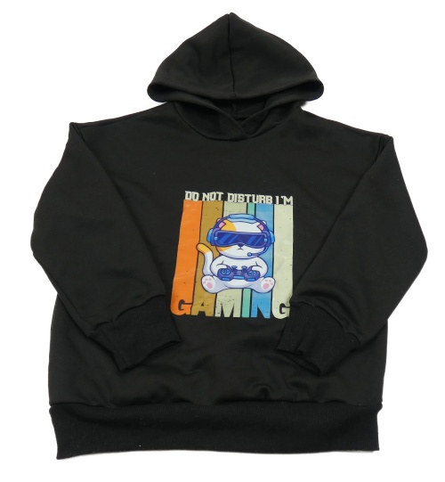 Černá mikina s potiskem a kapucí