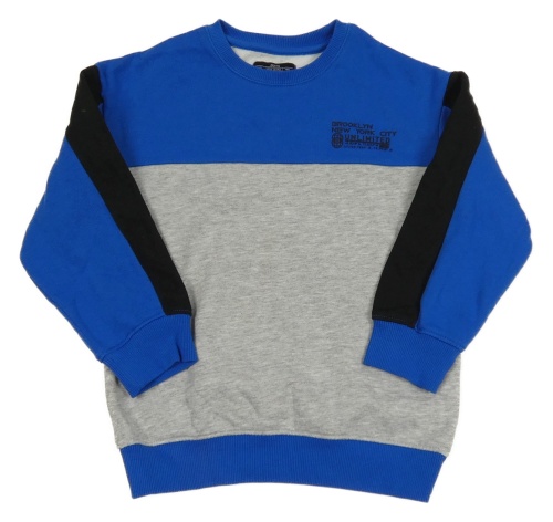 Tmavomodro-šedo-černá mikina s nápisem Matalan
