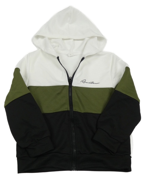 Bílo-khaki-černá propínací mikina s kapucí Shein