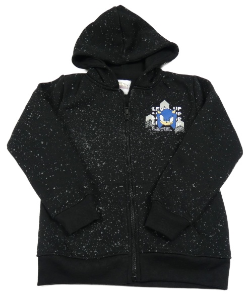Černo-šedá vzorovaná propínací mikina se Sonicem a kapucí