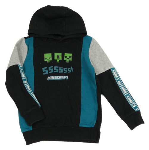 Černo-modro-šedá mikina s Minecraft a kapucí