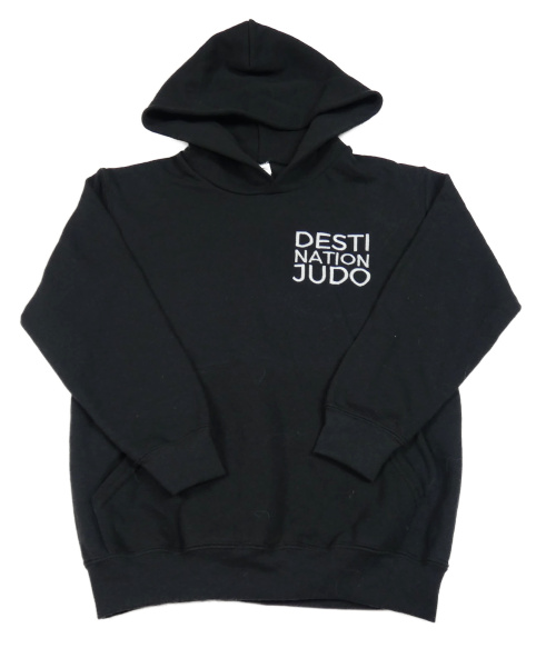 Černá mikina s nápisem a kapucí Fruit of the Loom