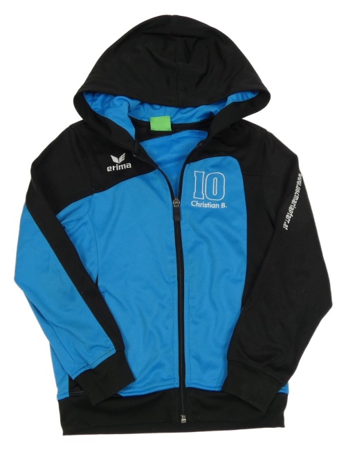 Modro-černá propínací sportovní mikina s číslem a logem a kapucí erima