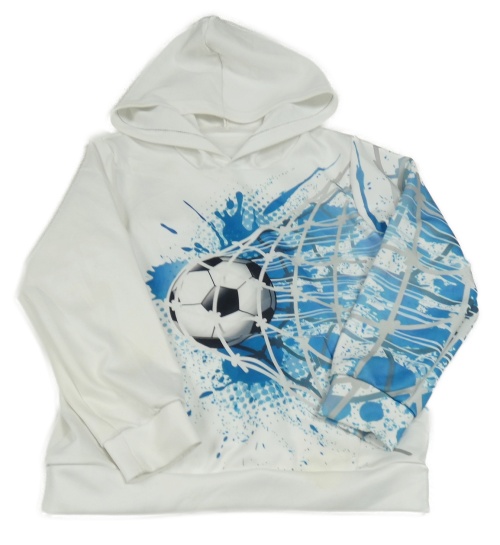Bílo-modrá sportovní mikina s míčem a kapucí