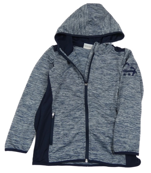 Tmavomodro-bílá melírovaná thermo propínací mikina s číslem a kapucí Topolino