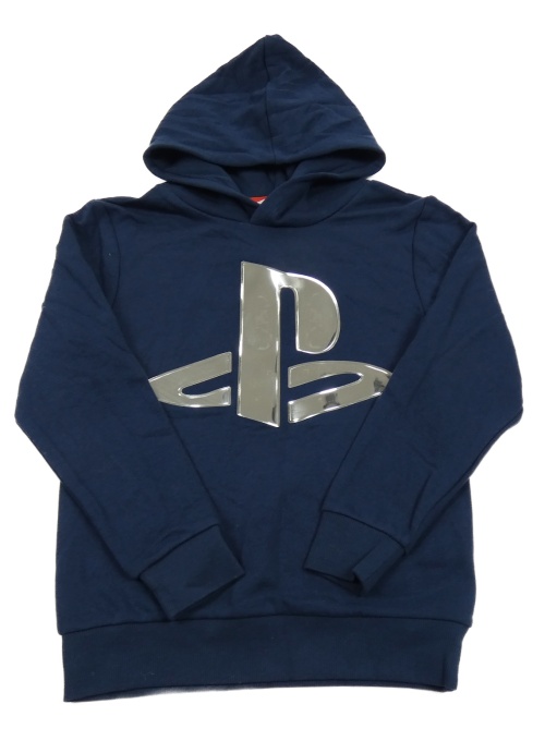 Tmavomodrá mikina s logem PlayStation a kapucí H&M
